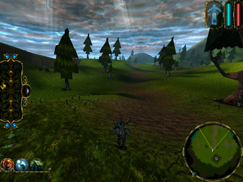 It was a pretty grey, bleak and rainy morning in early spring. There wasn’t much for me to do so trying a game that came with our new computer seemed as good an idea as any. The opening of the game makes you feel like you’re stepping into a different alien world. The music is haunting and ethereal and you’re greeted with the image of portal, whirling and spinning out of control. When I finally opened the first tutorial mission, I was greeted with the site of a large, insectoid creature standing in the midst of a beautiful green landscape. My breath was nearly taken away. The landscape and the sky were the most beautiful I’d ever seen in a game. While Sacrifice looks a little more dated now than it did in 2003 when I first played it, I’d never seen anything that looked so verdant and alive in a game before. The music was also incredible; it was epic and expansive much like the tesselated landscape I saw before me — the possibilities seemed endless. A little homunculus with small purple pants flew over to me and greeted me in a British accent, and there my adventures began.
